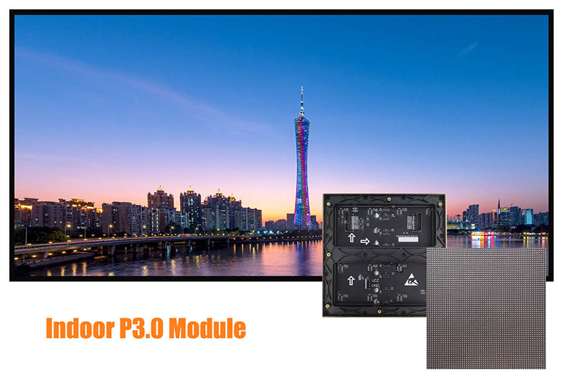 Con una distancia entre píxeles de 3,0 mm, este módulo ofrece un equilibrio óptimo entre visibilidad clara y rentabilidad, lo que lo convierte en una solución práctica y económica para una amplia gama de aplicaciones de visualización en interiores a gran escala.